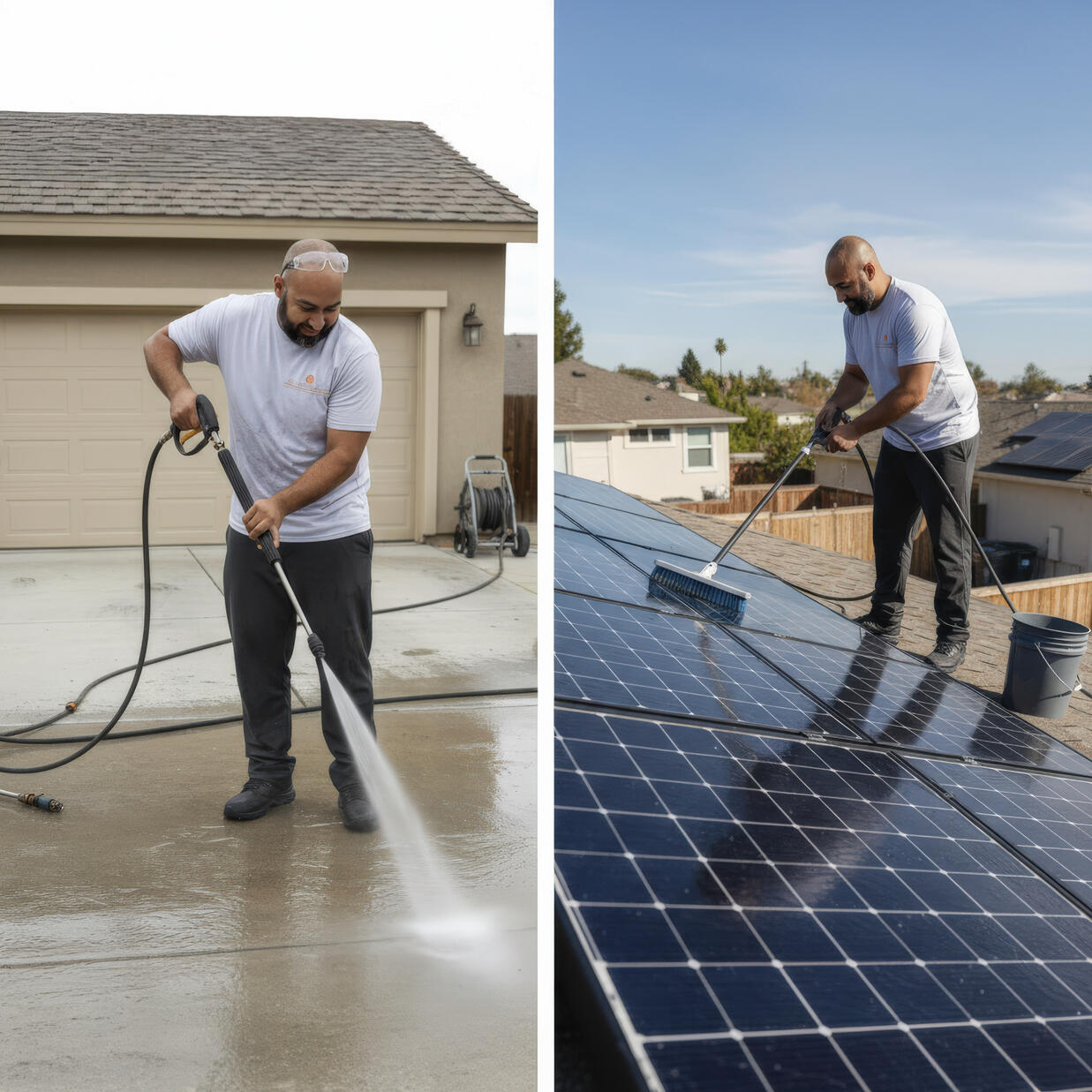 Specialized cleaning services, including pressure washing and solar panel cleaning.